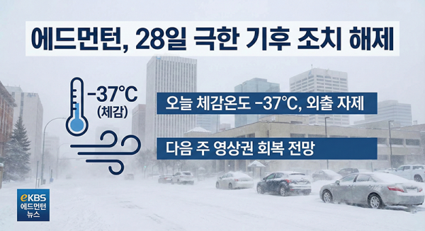 에드먼턴 시 당국은 지난 12월 19일부터 발효되었던 극한 기후 대응 조치를 오는 12월 28일 일요일 오후 3시를 기해 해제한다고 발표했습니다. 크리스마스 전후로 이어진 이번 한파는 오늘 토요일 최저 기온이 영하 26도까지 떨어지며 절정에 달할 것으로 보입니다.