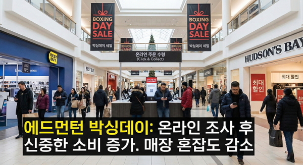 12월 26일 박싱데이를 맞아 에드먼턴의 주요 쇼핑몰인 킹스웨이 몰과 사우스게이트 센터 등에는 많은 인파가 몰렸습니다. 하지만 과거처럼 이른 새벽부터 매장 앞에 길게 줄을 서서 기다리는 풍경은 점차 사라지고 있는 추세입니다.
