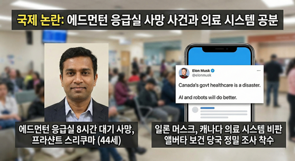 최근 에드먼턴 그레이 넌스 병원 응급실에서 8시간을 대기하던 44세 가장 프라샨트 스리쿠마 씨가 숨진 사건이 국제적인 논란으로 번지고 있습니다. 테슬라의 CEO 일론 머스크는 자신의 SNS 계정을 통해 이 사건을 공유하며 캐나다의 공공 의료 시스템을 강도 높게 비판했습니다.