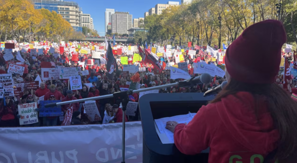 일요일 에드먼턴 의사당에서는 공교육을 지지하는 수천 명의 앨버타 주민들이 모여 집회를 열었다.