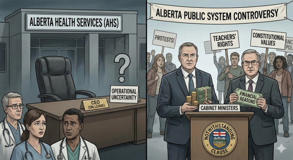 가장 첨예한 쟁점은 앨버타 보건 서비스(AHS) 최고경영자(CEO)의 갑작스러운 휴직이다. AHS는 앨버타주의 의료 시스템을 총괄하는 핵심 조직인 만큼, 최고 의사결정권자의 거취 논란은 의료 서비스의 연속성과 장기적인 개혁 계획에 차질을 줄 것이라는 비판을 받고 있다.