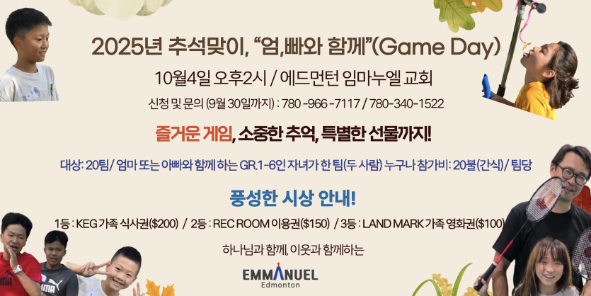 [10월4일] 임마누엘 교회 -2025년, 추석 맞이 "엄, 빠와 함께" (Game Day)